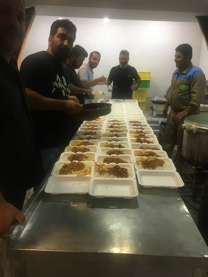 محبین و نوکران درگاه اهل‌بیت(ع) در پشت صحنه‌ی هیئت غذای نذری امام حسین(ع) را تهیه‌ کردند. غذای دهه‌ی اول محرم در آشپزخانه‌ی حسینیه‌ی فاطمة‌الزهرا(س) آماده شد.